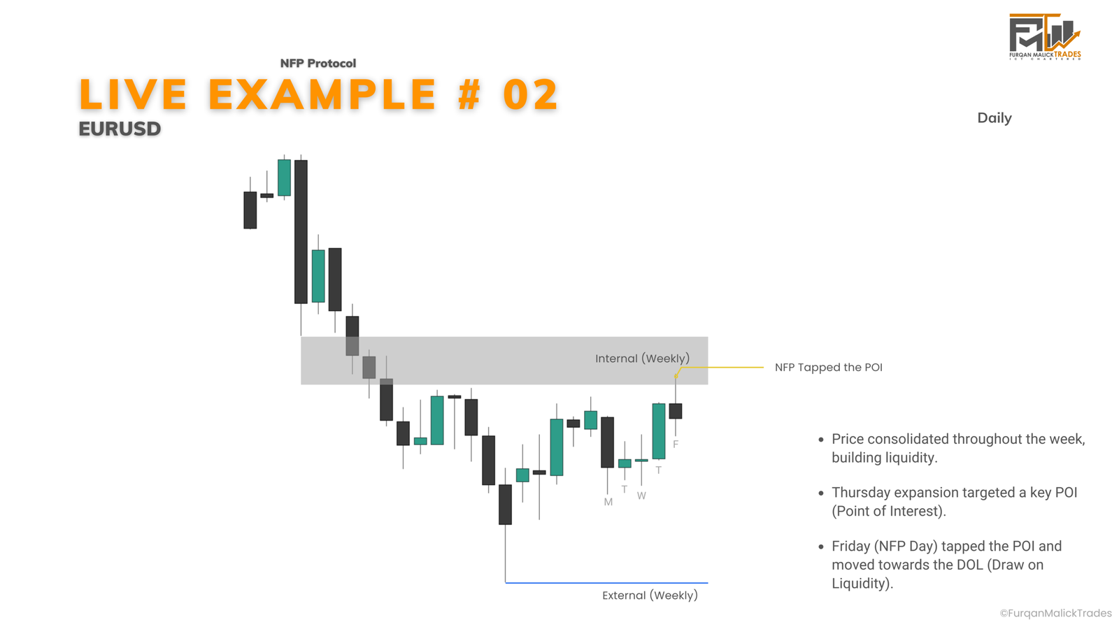 1. Weekly bias forms (Internal to External Liquidity)