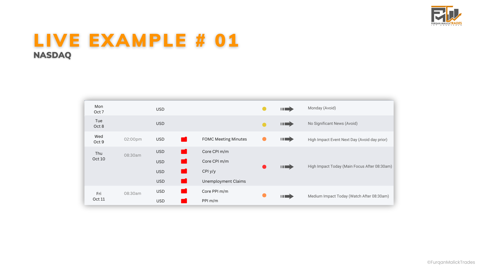 – Trading NASDAQ → Focus on USD news