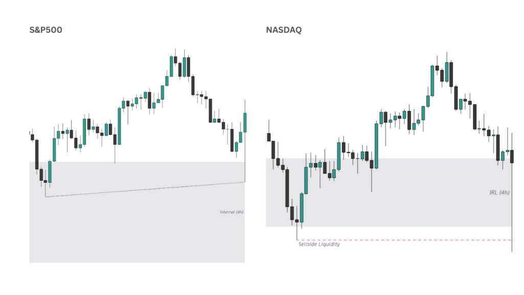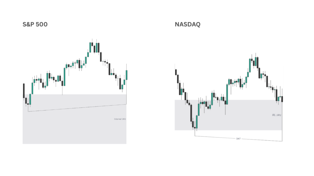 • Hourly Bullish SMT between S&P 500 and NASDAQ